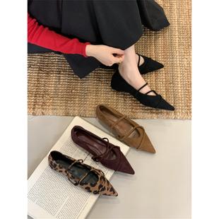 羊皮版 淺口氣質法式 尖頭瑪麗珍女鞋 復古一字帶內芭蕾舞單鞋由