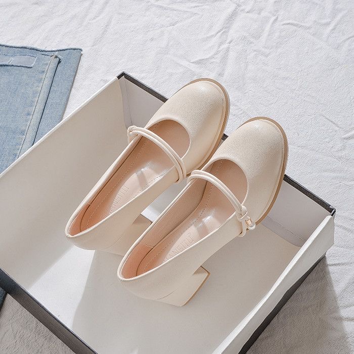 仙女風淑女單鞋 配裙子 女粗跟2025年春秋新款 真皮高跟瑪麗珍鞋由