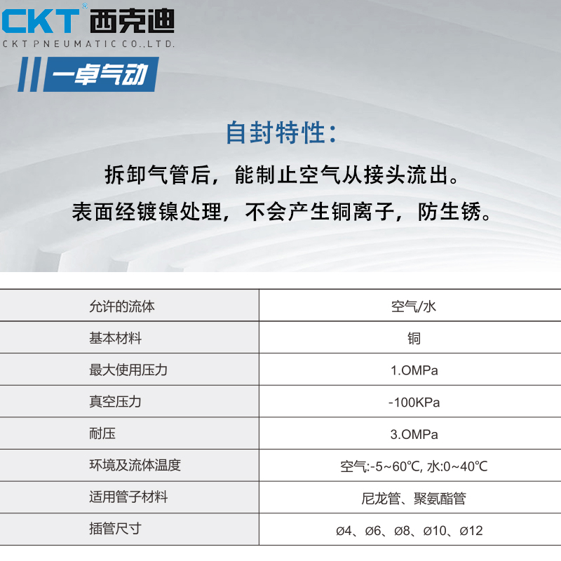 06081012 CKT SMC型自封式 KCT KCU KCL 隔板快速接頭KCE04 KCH由