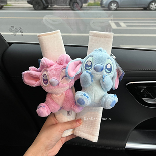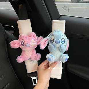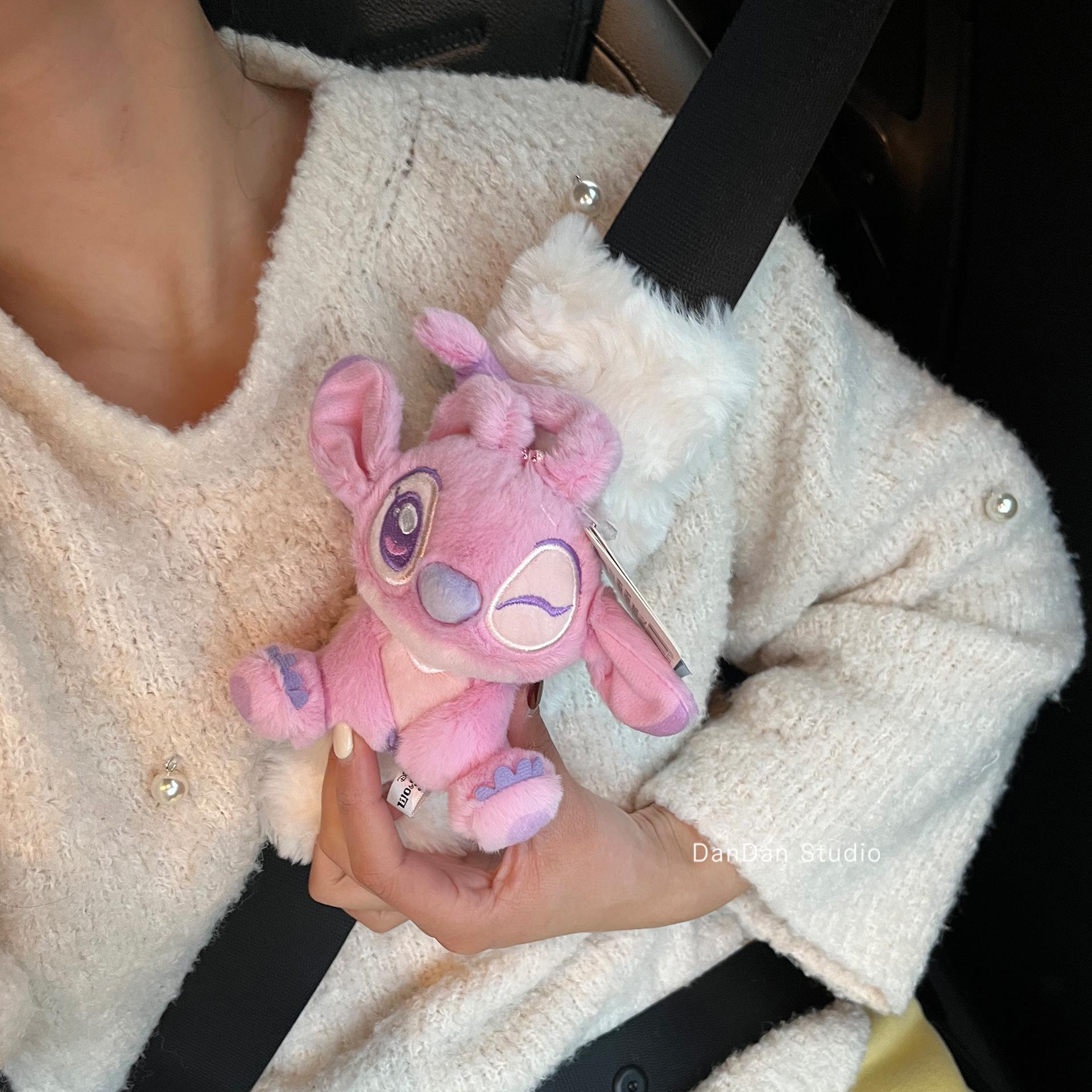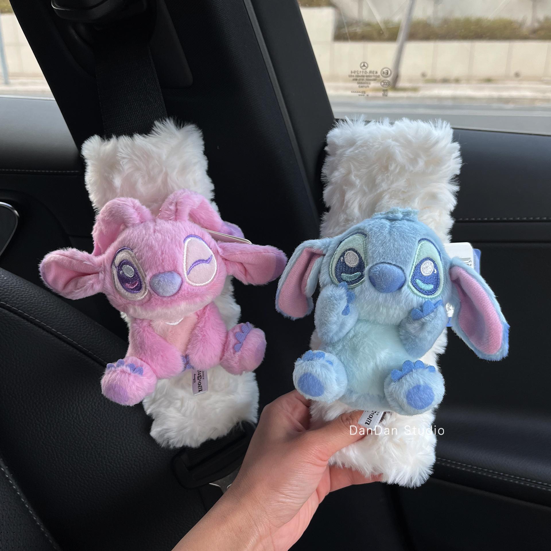 正版 飾禮物 史迪奇奶油系列汽車(chē)安全帶護(hù)肩套可愛(ài)安琪拉毛絨公仔裝由