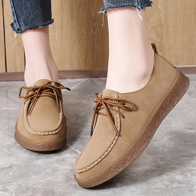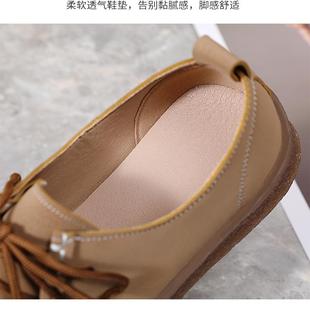 女士豆豆鞋 2025春秋季 休閑皮鞋 系帶復古媽媽時尚 新款 軟底防滑大碼由