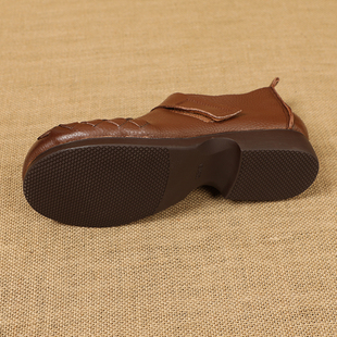 女低跟復(fù)古舒適真皮單鞋 24年春秋里外全牛皮大頭皮鞋 手工編織女鞋由