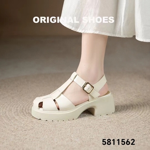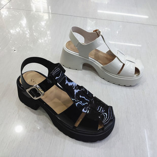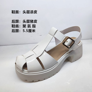 羅馬鞋 專柜商場包頭厚底漆皮女涼鞋 女2024新款 夏季 中跟粗跟女鞋由