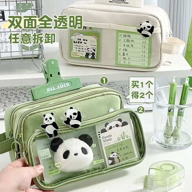 10層大容量熊貓筆袋高顏值文具袋2024年女生新款 男女孩小學(xué)生初高中設(shè)計(jì)感鉛筆盒痛包筆袋 多功能文具盒套裝由