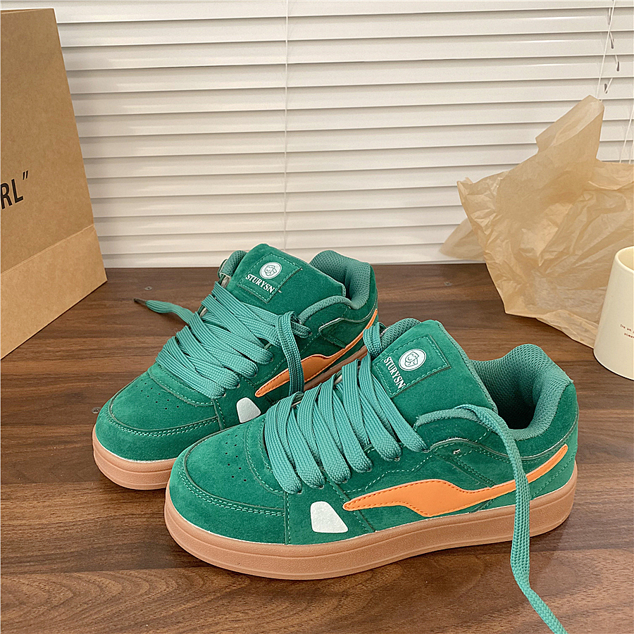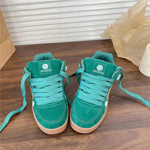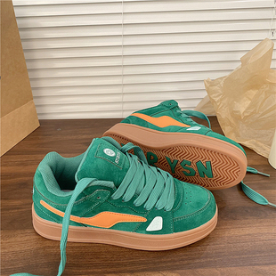 新款 易少年 港風厚底綠色面包鞋 女ins潮2025秋季 百搭運動休閑板鞋由