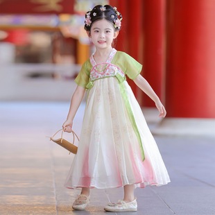 兒童高端超仙唐裝 女孩古風飄逸公主裙 連衣裙夏款 漢服女童2025新款由
