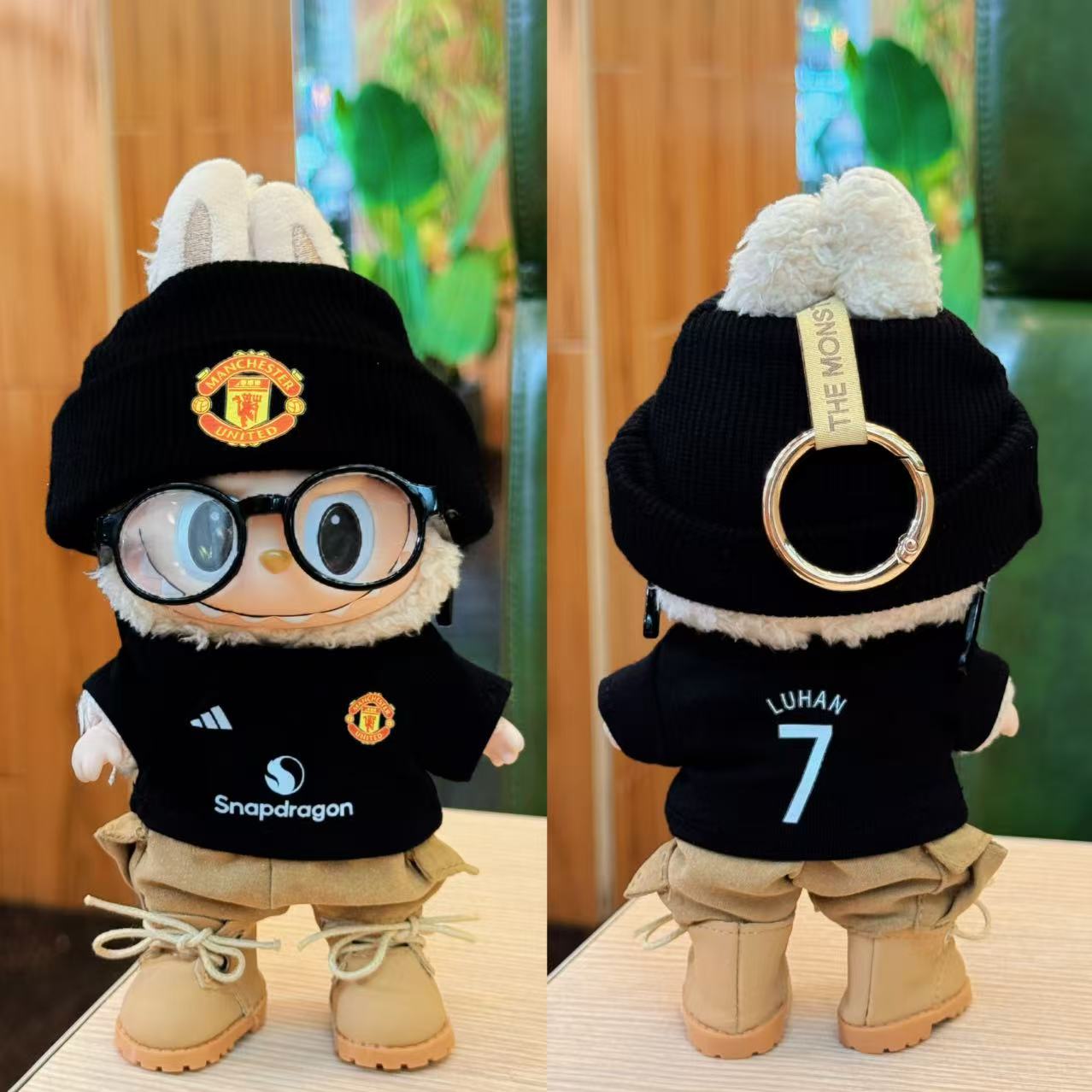 運動曼聯球衣 17cm拉布搪膠掛件盲盒labubu衣服T恤鹿晗同款由