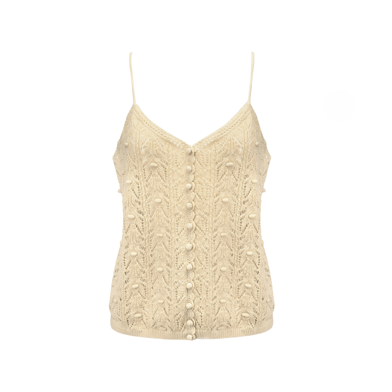 Bettychow 慵懶度假棉質鏤空吊帶背心黑色米白綠色 手工編織法式由