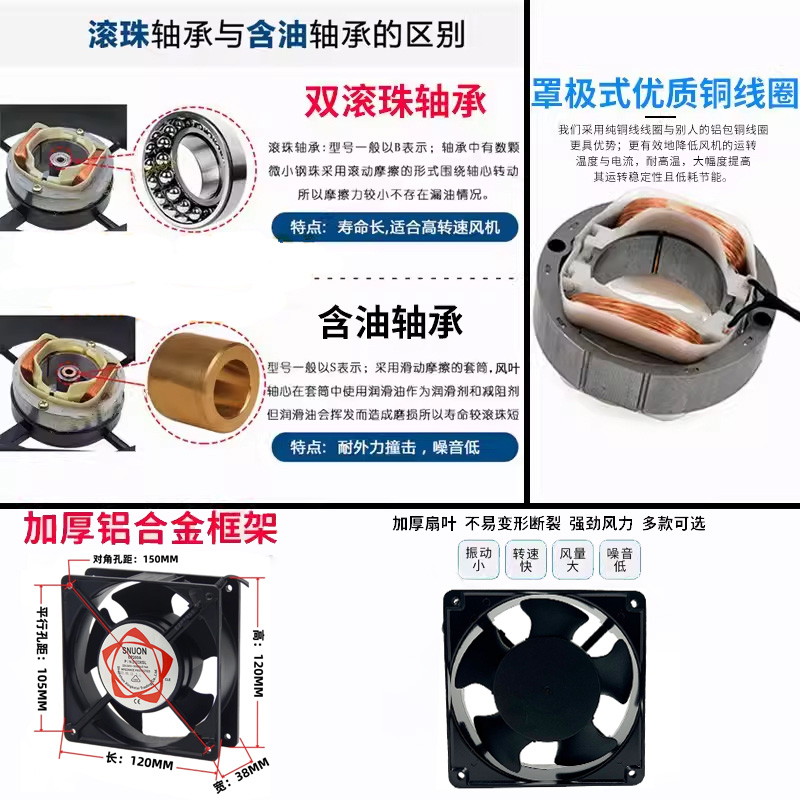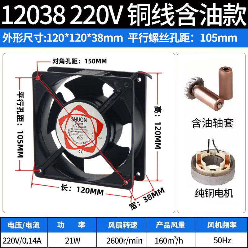 12cm SNUON 12038散熱風(fēng)扇220V DP200A 軸流風(fēng)機 KTV機柜散熱風(fēng)扇由