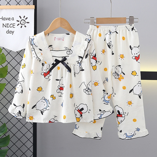 女童睡衣春秋季 泡泡棉鄒布薄款 美樂蒂卡通公主家居服寶寶套裝 長袖由