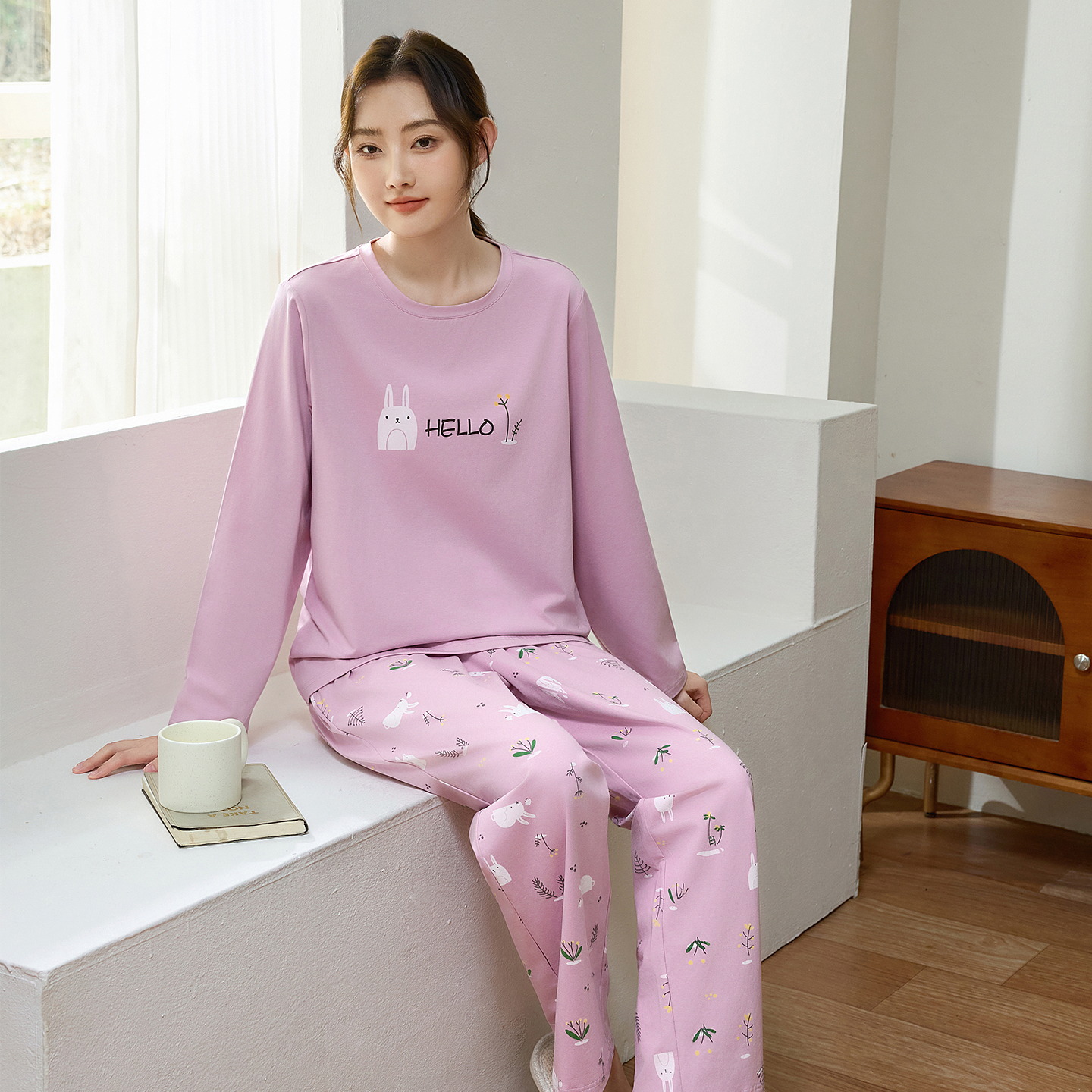 2025年新款 兔子外穿 圓領家居服休閑長袖 康妮雅春秋純棉睡衣女長袖由