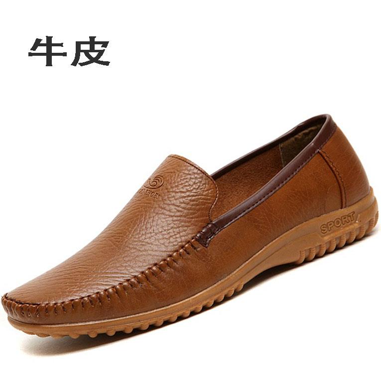 米白單鞋 高檔春夏軟底駕車鞋 百皮搭淺 豆豆男鞋 鞋 真色皮閑鞋 四休季由