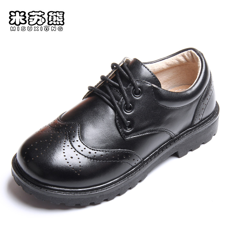 斯納菲兒童學生皮鞋 男童真皮演出小黑鞋 主持人英倫風單鞋 黑色新款