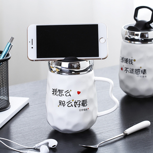 情侶水杯高級感一對陶瓷馬克杯帶蓋搞笑杯子禮物稀奇古怪對杯家用