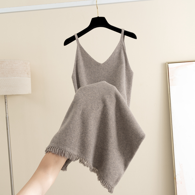 V領吊帶背心針織連衣裙女2025秋冬新款 內搭外穿打底毛衣裙 中長款由