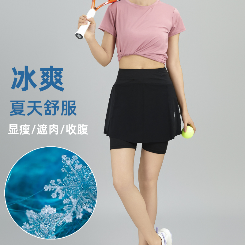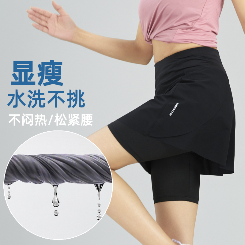 裙女跑步健身羽毛球網球假兩件高腰半身裙 馬拉松速干運動5五分褲由
