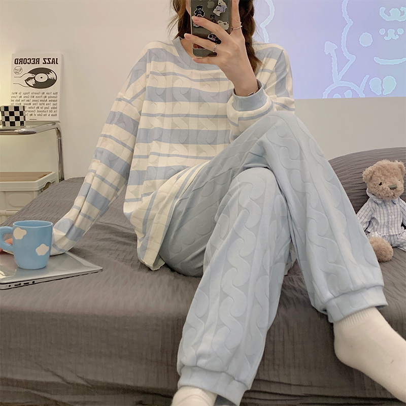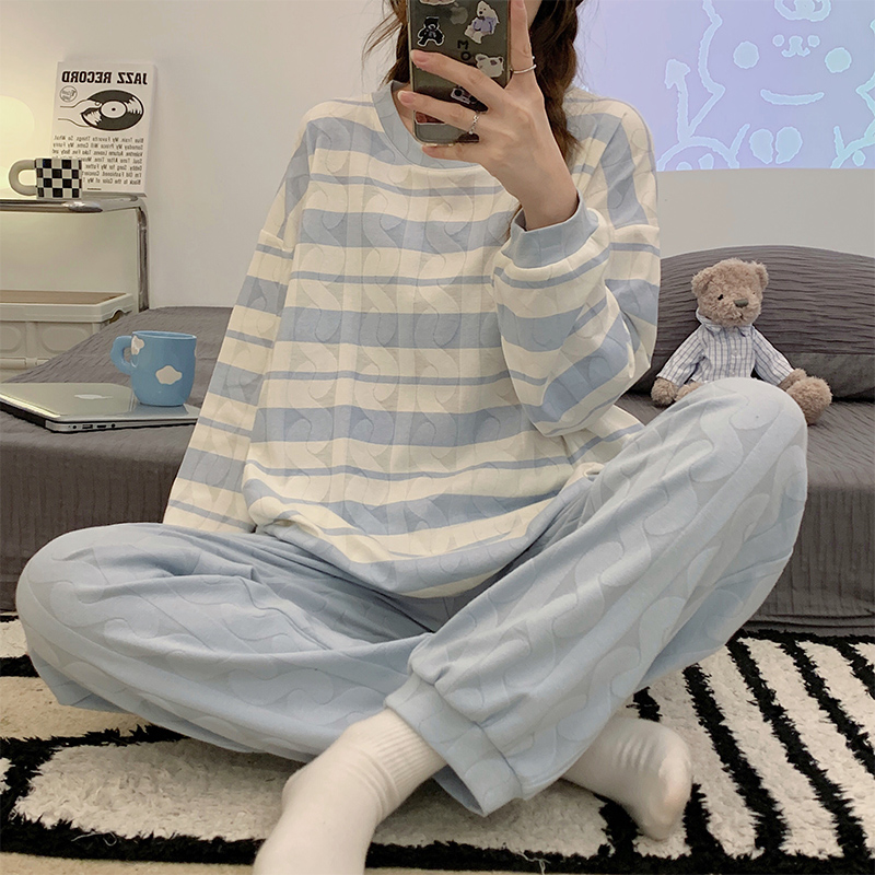 純棉2025年家居服套裝 條紋薄款 長袖 新款 睡衣女款 可外穿春秋冬季由