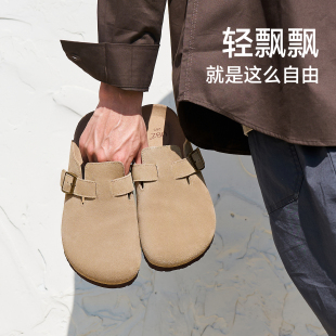 UBZ 外穿2025年春秋新款 厚底博肯一腳蹬軟木拖鞋 防水勃肯半拖男款由