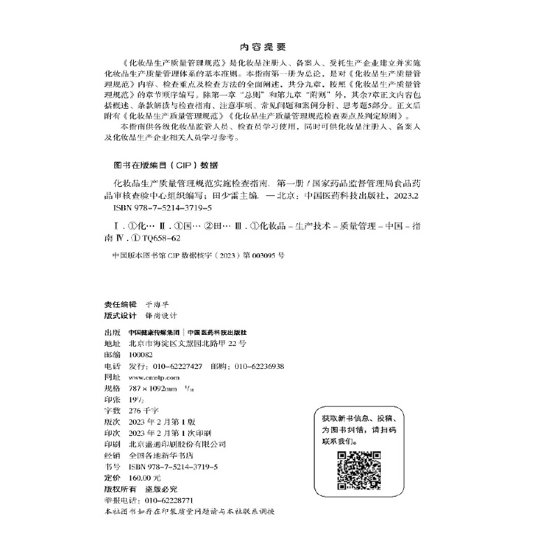 化妝品生產(chǎn)質(zhì)量管理規(guī)范實施檢查指南第一冊第1冊田少雷主編檢查要點重點檢查方法及判定原則國家藥監(jiān)局食品藥品審核查驗中心編寫由