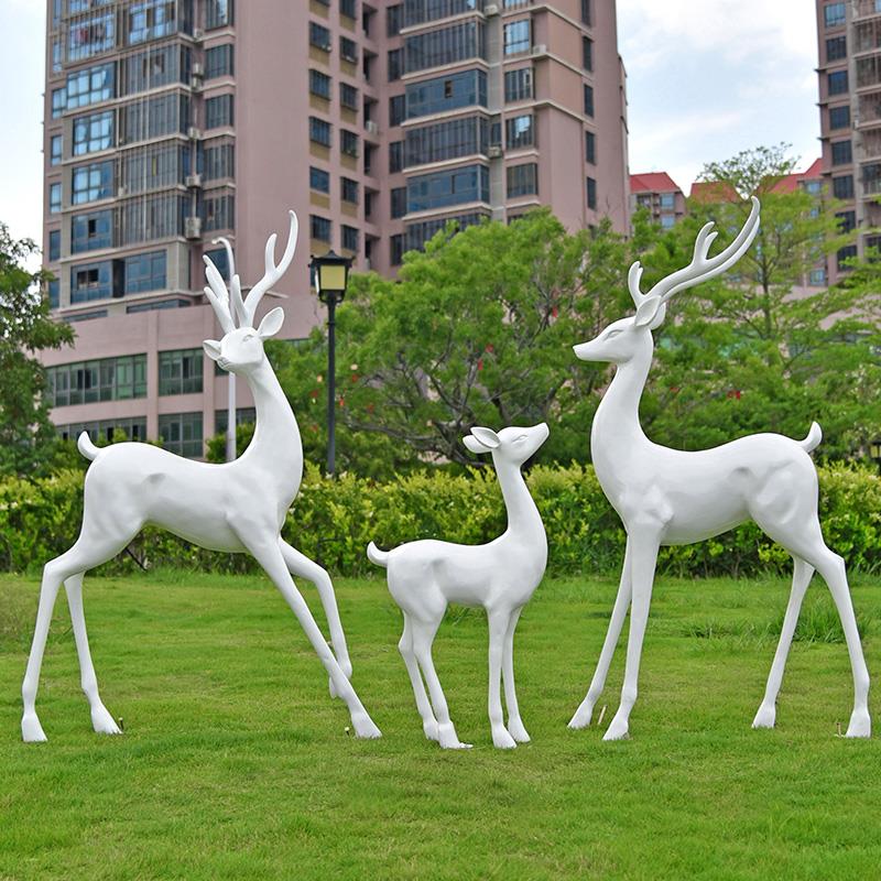 戶外玻璃鋼仿真白鹿擺件園林景觀花白鹿040小鹿動物雕塑婚美陳梅由
