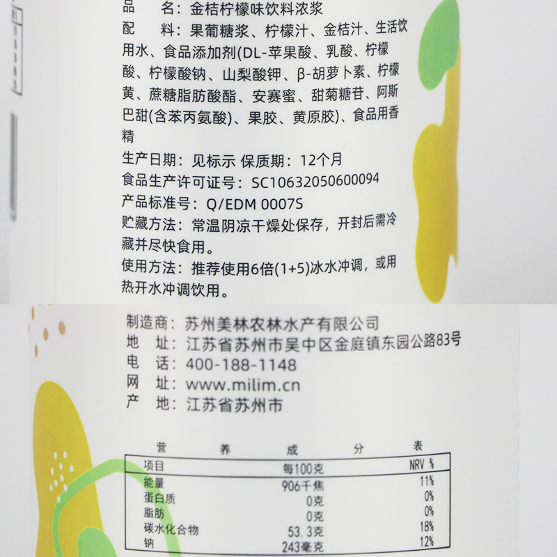 2.1太湖美林6倍濃縮果汁果醬飲料濃漿 太湖美林金桔檸檬汁1.2kg由
