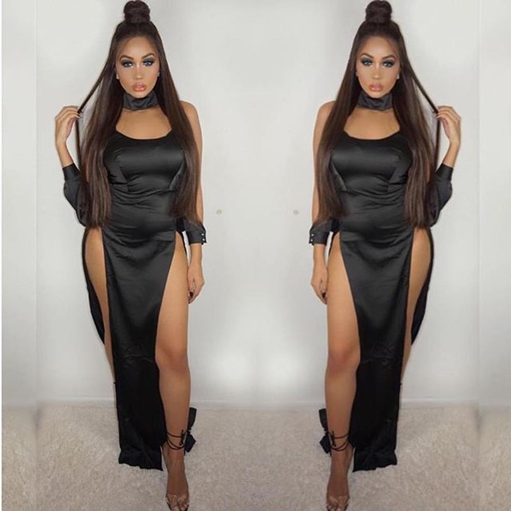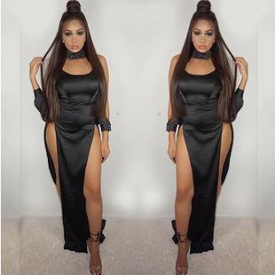 Sexy tight dress plus sling sexy irregular color solid slit由