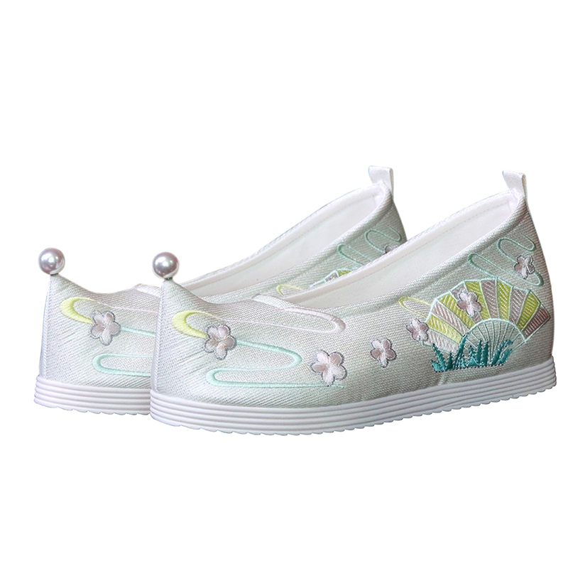 鞋 春秋原創國風漢服鞋 子女古風繡花鞋 搭配古裝 淡雅 內增高翹頭弓鞋
