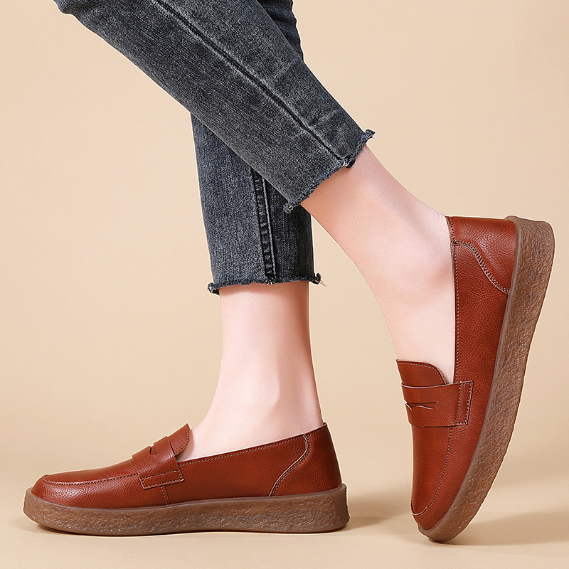 女士皮鞋 皮面休閑鞋 秋季 懶人一腳蹬 女鞋 牛津底樂福鞋 板鞋 2025新款由