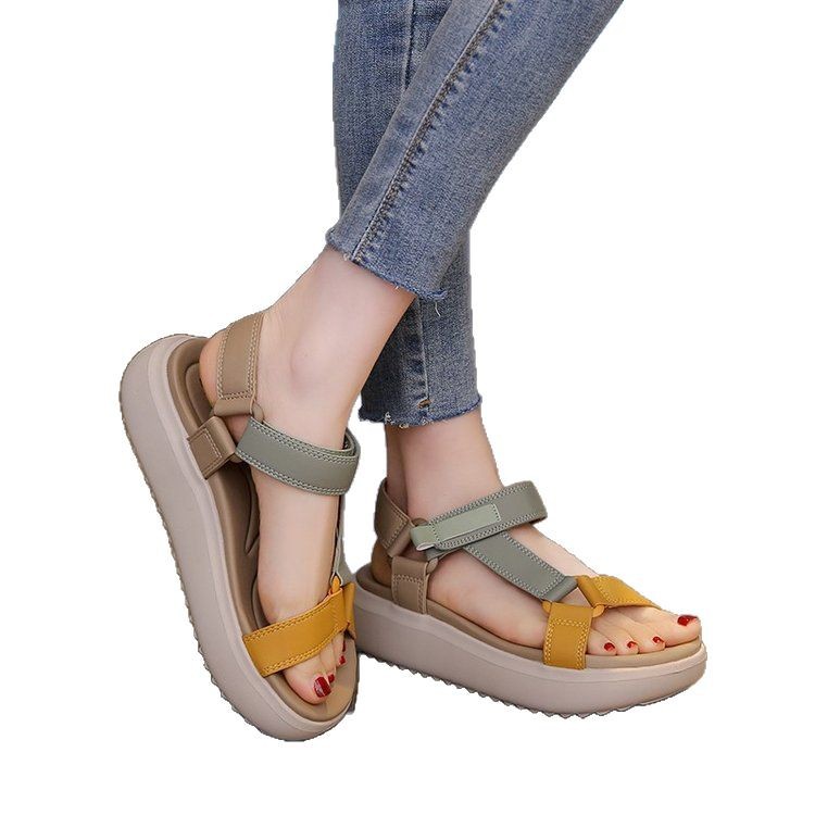 時尚 女2025年夏季 新款 百搭休閑運(yùn)動厚底魔術(shù)貼媽媽 舒適軟底涼鞋由
