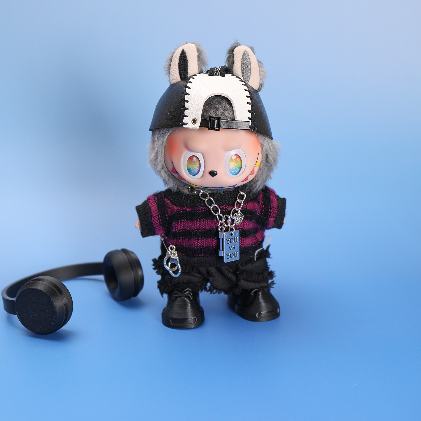 拉布布17cm公仔玩偶娃衣換裝 著替1代3代服飾labubu衣服鴨舌帽套裝由