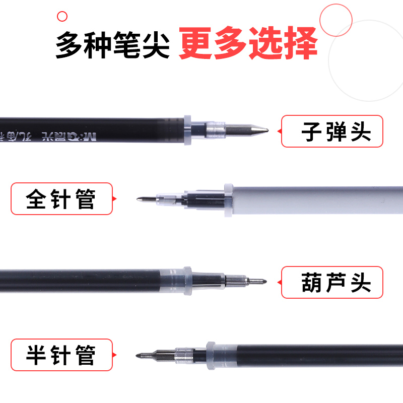晨光中性筆芯黑色0.5mm全針管0.38水筆子彈頭紅色藍色孔廟祈福學生考試筆芯碳素替芯大容量辦公寫字用品文具由