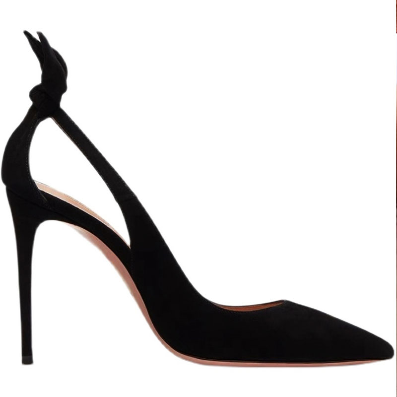 黑色絨面高跟鞋 金屬尖頭細跟淺口名媛氣質法式 單鞋 女2024春秋新款