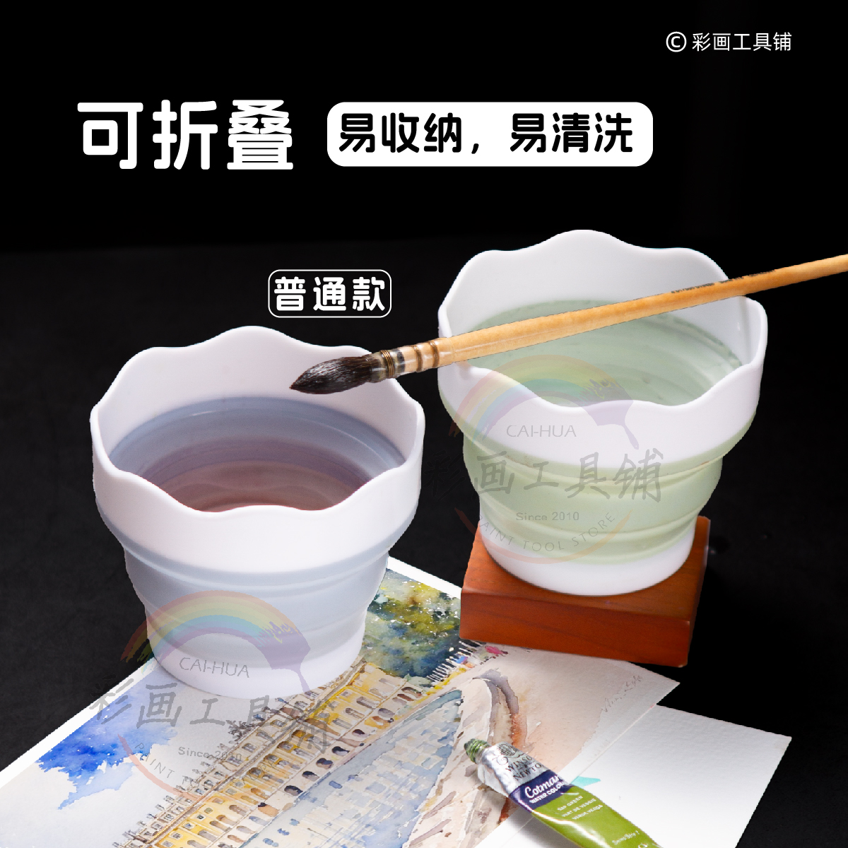 小學生美術課伸縮洗筆筒 便攜折疊洗筆杯硅膠筆洗水彩畫寫生口袋款由