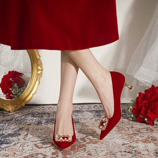 細跟高跟鞋 313233單鞋 女鞋 秀禾紅色婚鞋 新娘鞋 女2023年新款 34小碼由