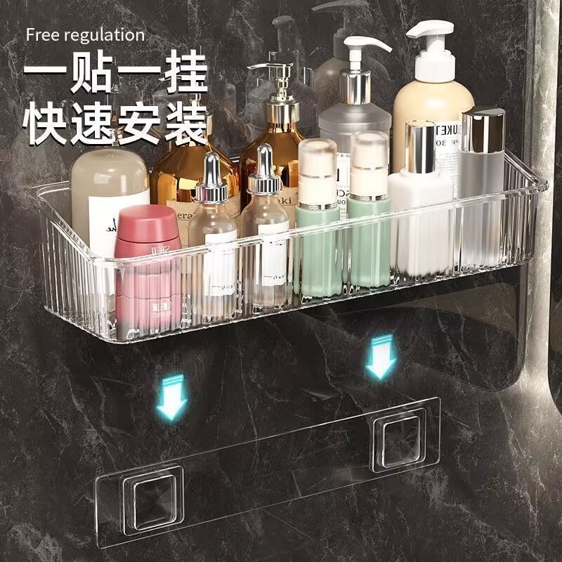 衛(wèi)生間置物架浴室?guī)词珠g免打孔壁掛洗漱臺墻上化妝品收納架子由