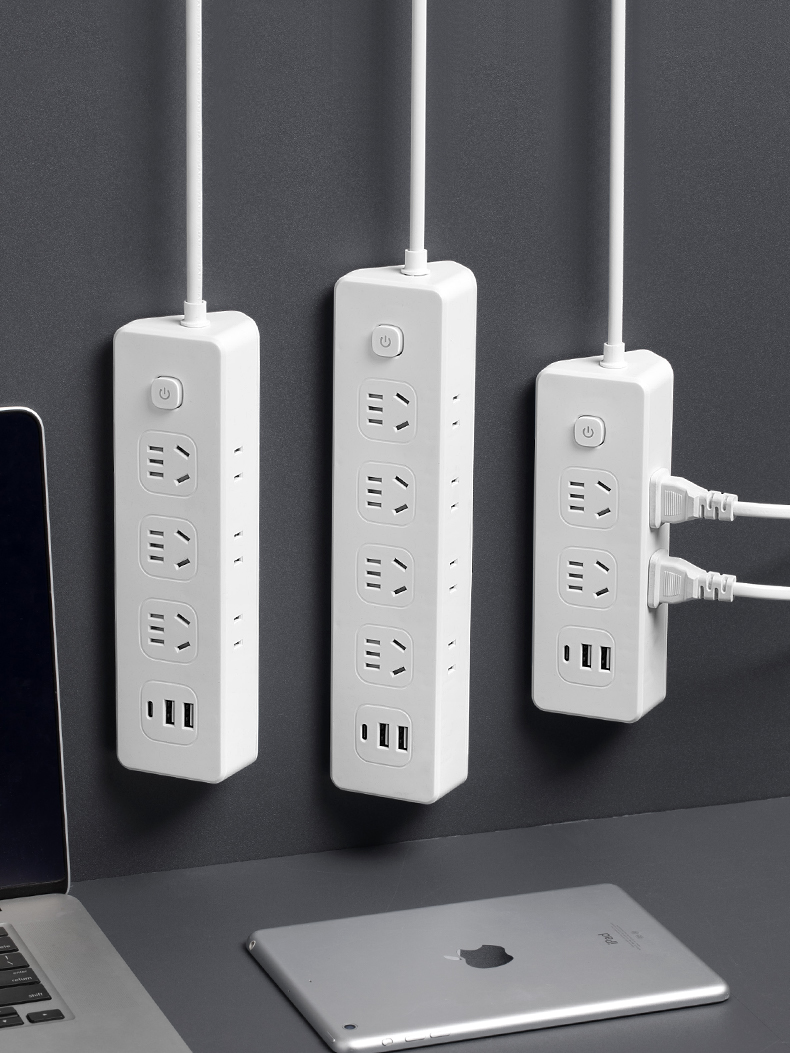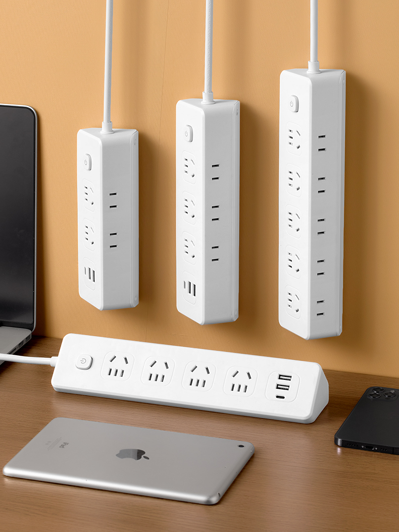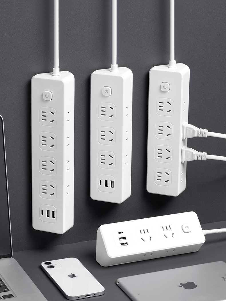 米白家用智能排插USB插座板電源多功能開關插排接線板長線插板