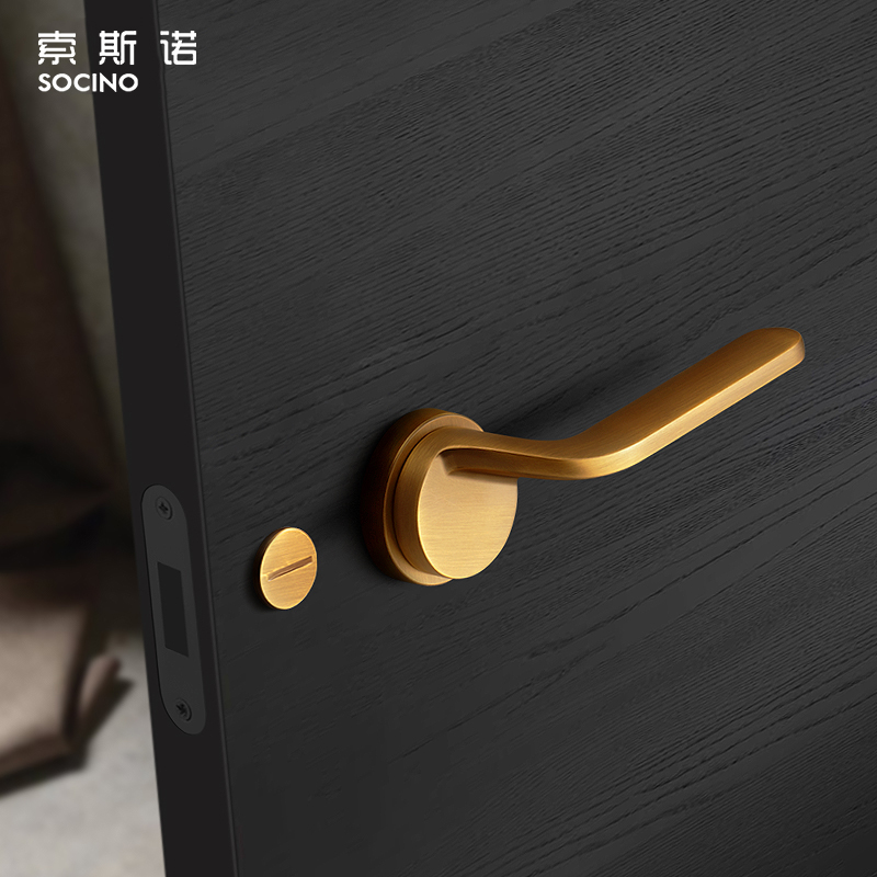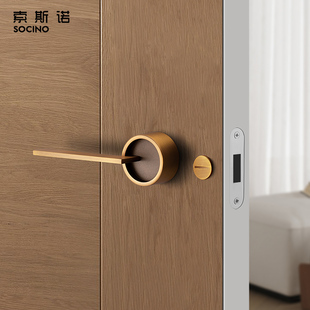 索斯諾北歐門鎖室內臥室靜音房門鎖極簡黃古銅分體鎖現代磁吸鎖具由