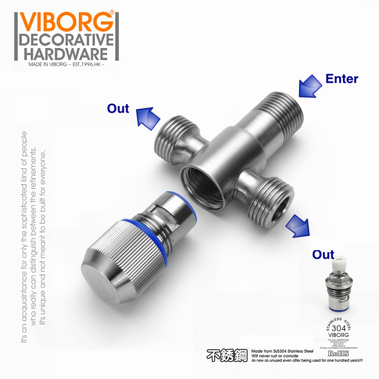 VIBORG域堡三通角閥304不銹鋼三角閥一進二出八字閥止水閥門4分由