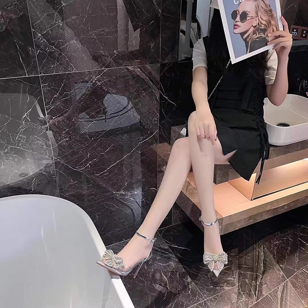 細(xì)跟透明中空水鉆蝴蝶結(jié)一字帶時尚 尖頭高跟鞋 女2025春季 新款 單鞋由