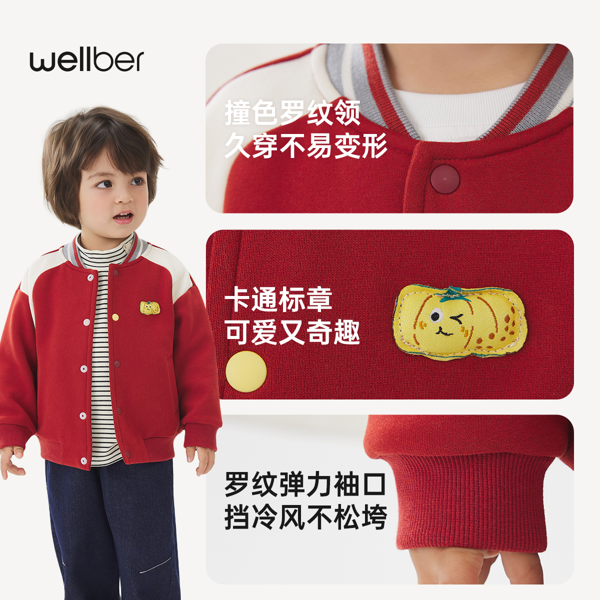 威爾貝魯兒童外套男寶寶嬰兒秋裝 女童男童兒童棒球服春秋 2025新款由