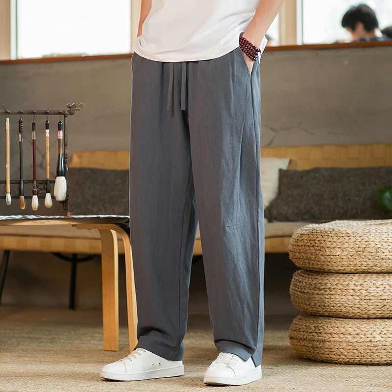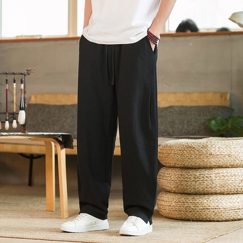 寬松復古長褲 亞麻休閑褲 子 棉麻功夫太極褲 闊腿褲 男春季 中國風大碼由