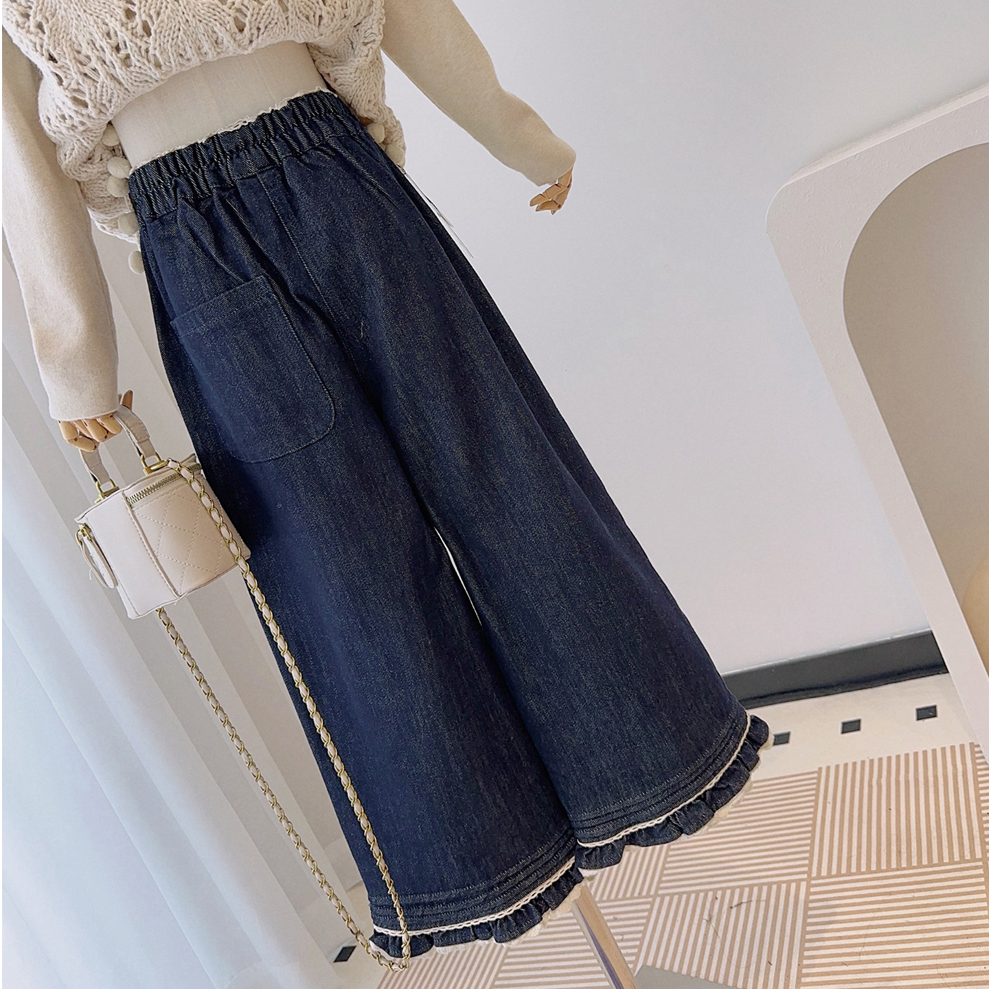 甜美花邊直筒牛仔褲 女童裝 新品 子中大童 九分褲 兒童褲 韓版 2025秋季由