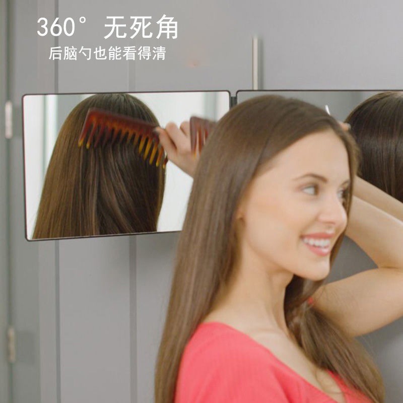 三面鏡自助理發(fā)后視懸掛伸縮剪發(fā)自己理發(fā)鏡子大號折疊梳妝化妝鏡由