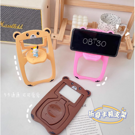 飾擺件便攜可折疊小椅子追劇神器 手機桌面支架懶人可愛創意小熊裝由