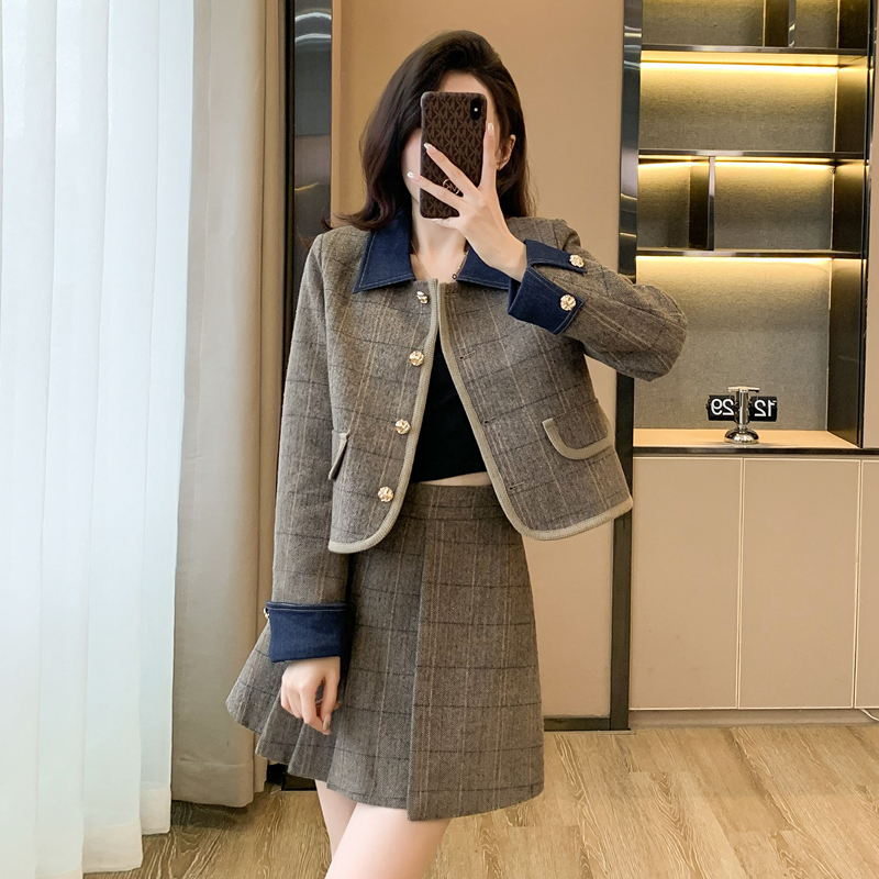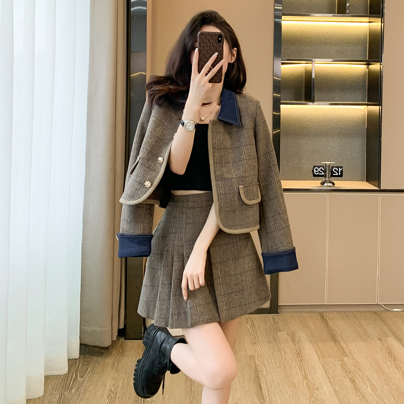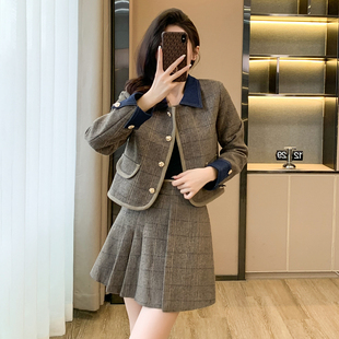 復古氣質小香風短外套百褶裙套裝 女 法式 小個子穿搭一整套2025新款由