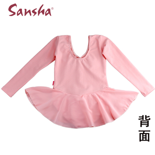 練功服 三沙Sansha兒童芭蕾舞蹈服 棉 長袖 體操服可開檔 雪紡紗裙由