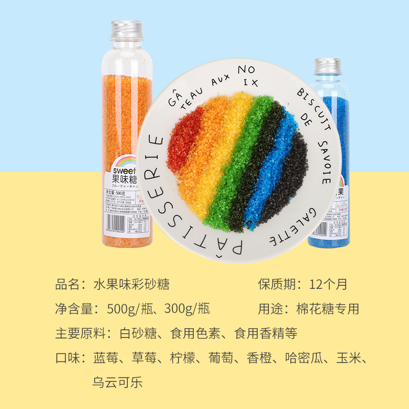 陽格力斯彩色棉花糖六一機器專用彩砂糖8種蛋糕裝 500g 飾砂糖300g由