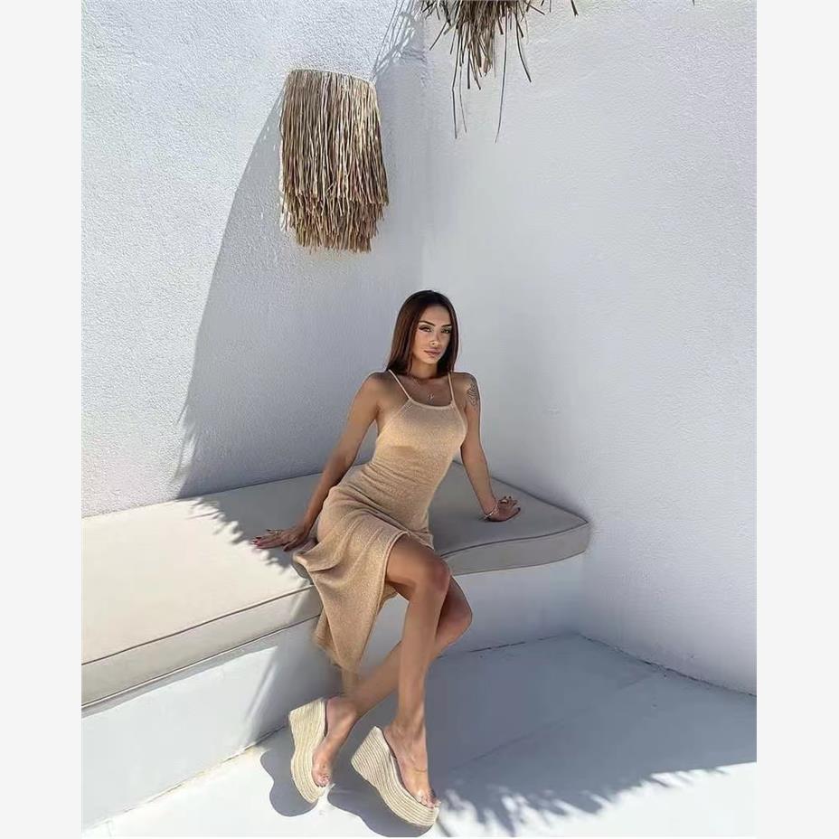 beach skirt slit 歐美風性感沙灘裙開叉連衣裙掛脖吊帶裙Knitted由