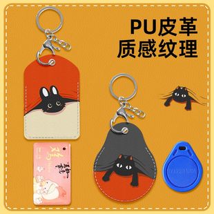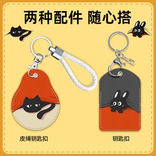 鑰匙扣鏈門禁卡套一體電梯保護套可愛小長方形nfc磁吸電動車水滴形圓形迷你小區門卡公交真皮卡通電子鎖感應由