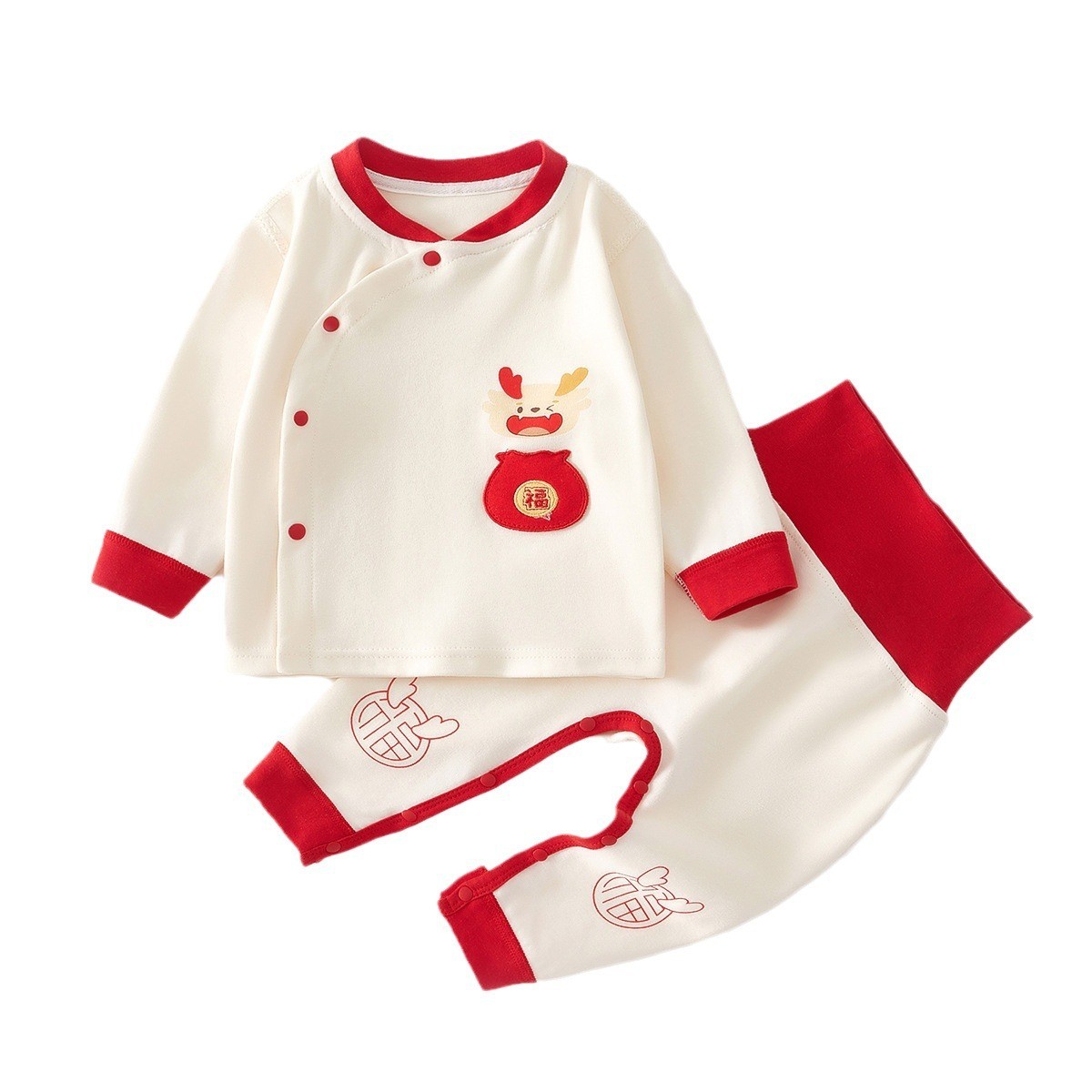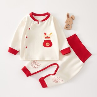 嬰兒春秋季 分體套裝 新生寶寶秋款 紅色棉毛套龍年百天周歲衣服 長袖由